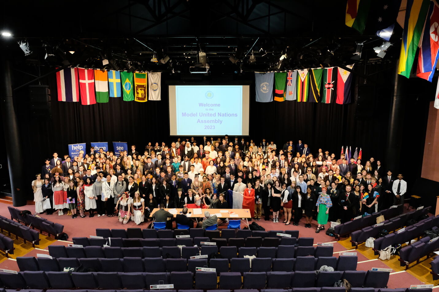 Rotary Model United Nations is a two-day event held annually in Auckland. The event involves 300 Year 12 and 13 students from Northland and Auckland secondary schools. Each team of three students is given a nation to represent that is part of the UN. Students embody their nations' views and perspectives on current world issues.