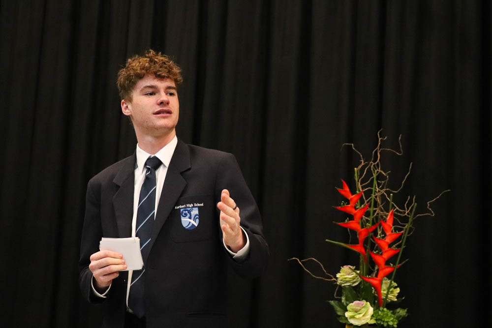 Every year Kerikeri High School students as part of their English class, learn the skills of speech writing and presentation. Each Year Level then holds a speech competition with the semi-finalists, finalists and winners receiving a Cornerstone. The winner of each Year Level then competes for the highly respected Jock Hodgson trophy. Students also have the opportunity to compete in the Impromptu Speech Competition. Many of our winning speakers have gone on to enter and gain success in other competitions including the Rotary Speech Competition, the Lions Speech Competition and the Race Unity Competition.